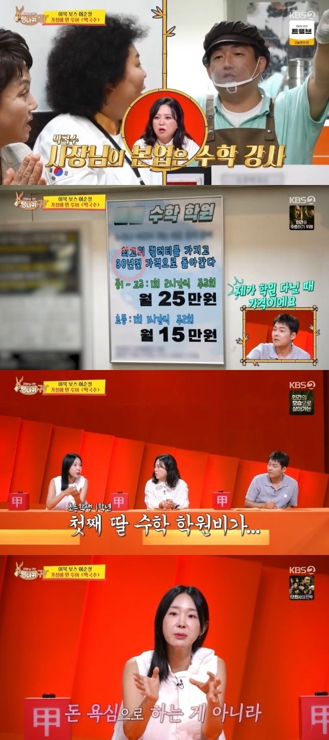 지난 24일 방송된 KBS 2TV 예능 ‘사장님 귀는 당나귀 귀’에서는 이순실, 이경실이 여의도의 한 막국숫집을 찾는 장면이 공개됐다.