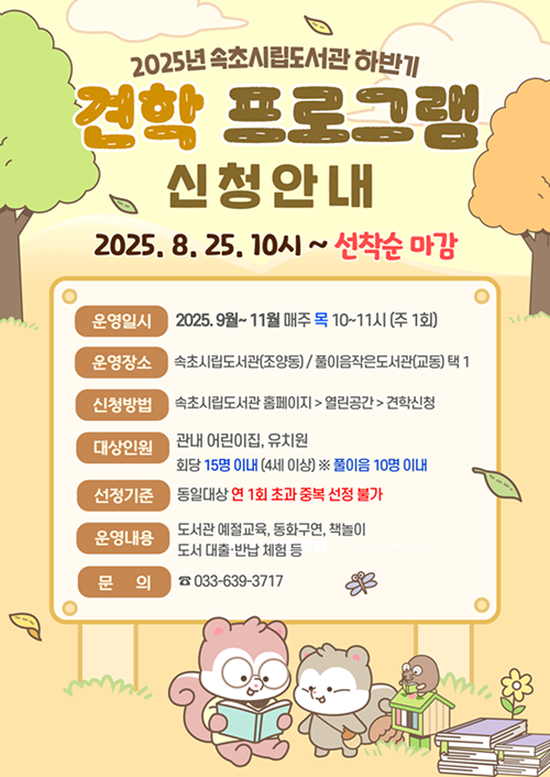 [스포츠서울ㅣ김기원기자]속초시립도서관에서 2025년 하반기 견학 프로그램을 운영한다.