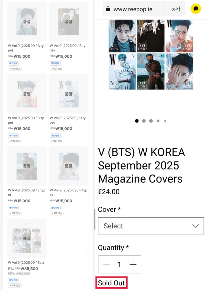 [스포츠서울 | 배우근 기자] 방탄소년단(BTS) 뷔가 전역 후 처음으로 장식한 매거진 커버가 국내외에서 잇따른 품절 행렬을 이어가며 글로벌 인기를 입증했다.