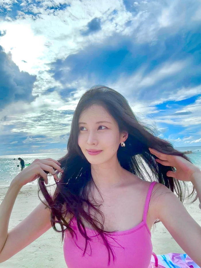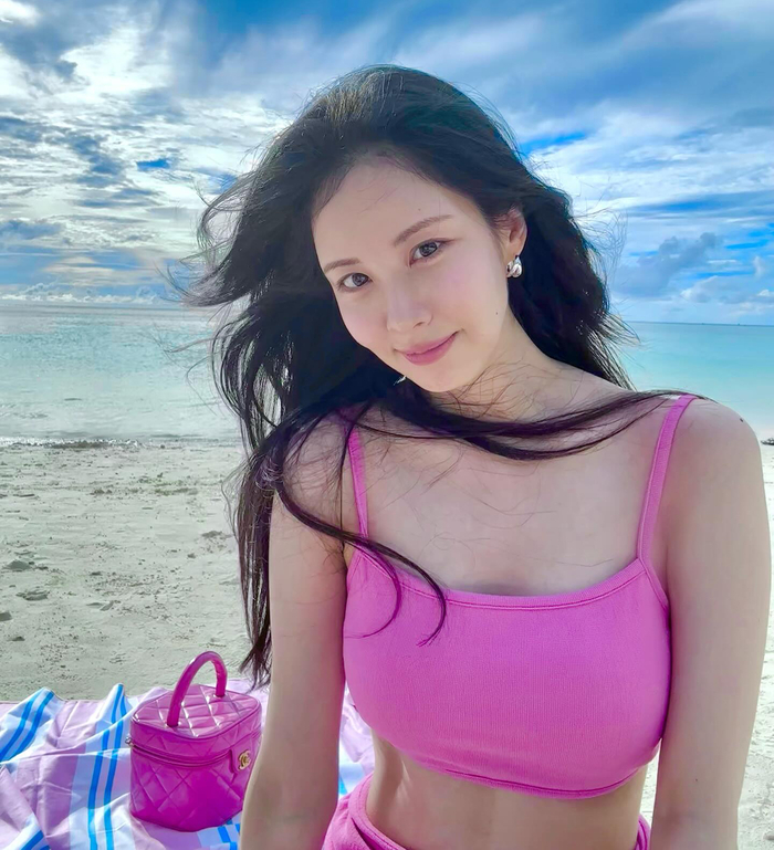 사진 속 서현은 청량한 하늘과 푸른 바다가 펼쳐진 해변에서 핑크색 크롭탑과 스커트로 완성한 스타일을 선보였다.