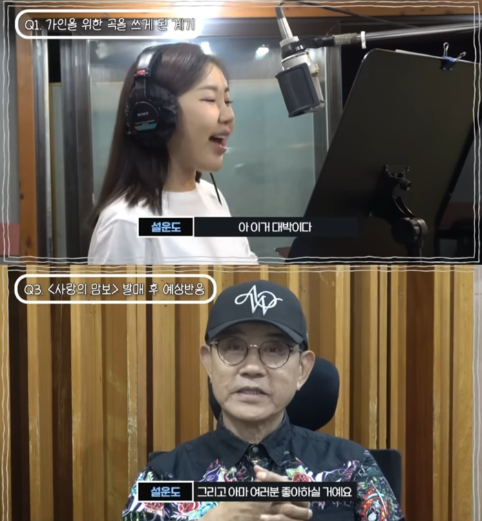 공개된 영상 속에서는 송가인이 설운도와 함께 녹음하고 있는 모습이 담겼다. 송가인은 설운도에게 “이걸 노래할 때 목소리를 깨끗하게 할까요, 아니면 목에 성음을 넣어서 할까요”라며 디테일한 부분까지 조언을 구했다. 또한 악보와 가사를 하나하나 꼼꼼히 점검하며 감성을 온전히 담아내기 위해 노력하는 모습을 보였다.