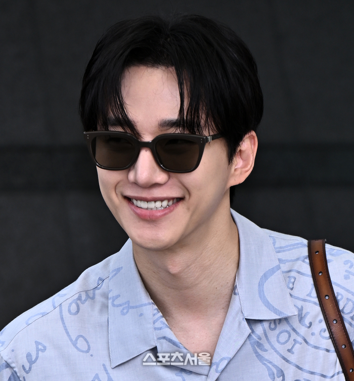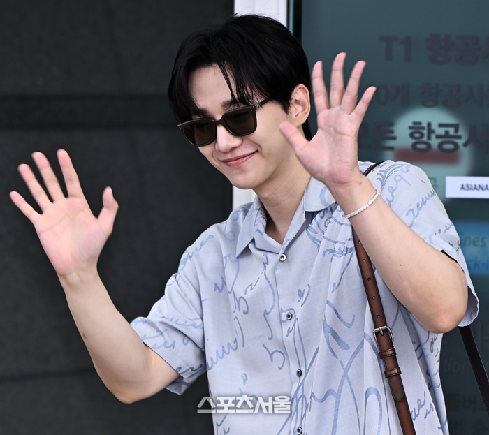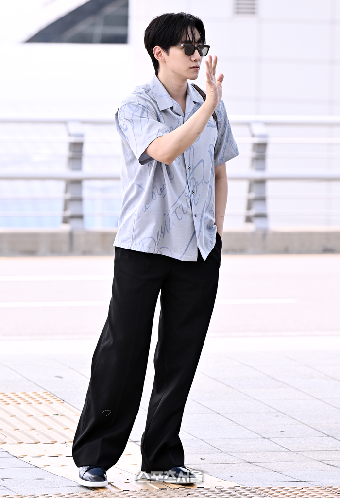 이날 이준호는 캐주얼하면서도 세련된 여름룩을 연출하며 공항에 마중나온 팬들에게 시원함을 선사했다. 연한 블루 컬러의 셔츠는 전체적으로 곡선적인 패턴이나 텍스트가 프린트되어 있어 단조로움을 피하고 개성을 더했다.