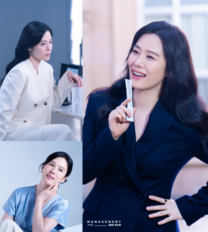 매니지먼트 시선은 26일 김현주의 한 이너뷰티 브랜드 광고 촬영 비하인드 사진을 여러 장 공개했다.