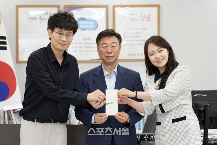 결혼 예정 커플 2쌍 신상진 시장에게 청첩장 전달.. ‘솔로몬의 선택’ 참여 예비부부 축복