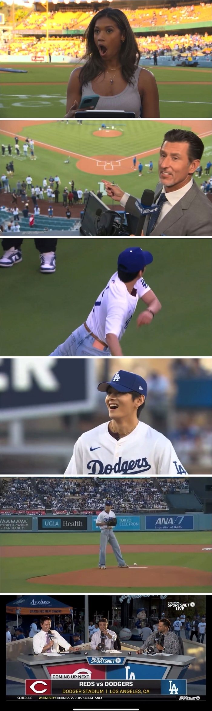 중계 해설은 “멋진 변화구를 던졌다. 정말 멋지다. 당장 계약하자고 할 정도다”라고 반응했다. 시구 직후에는 다저스의 시그니처 캐치프레이즈인 It’s time for Dodger baseball!을 힘차게 외쳐 현장의 열기를 한층 더 끌어올렸다.