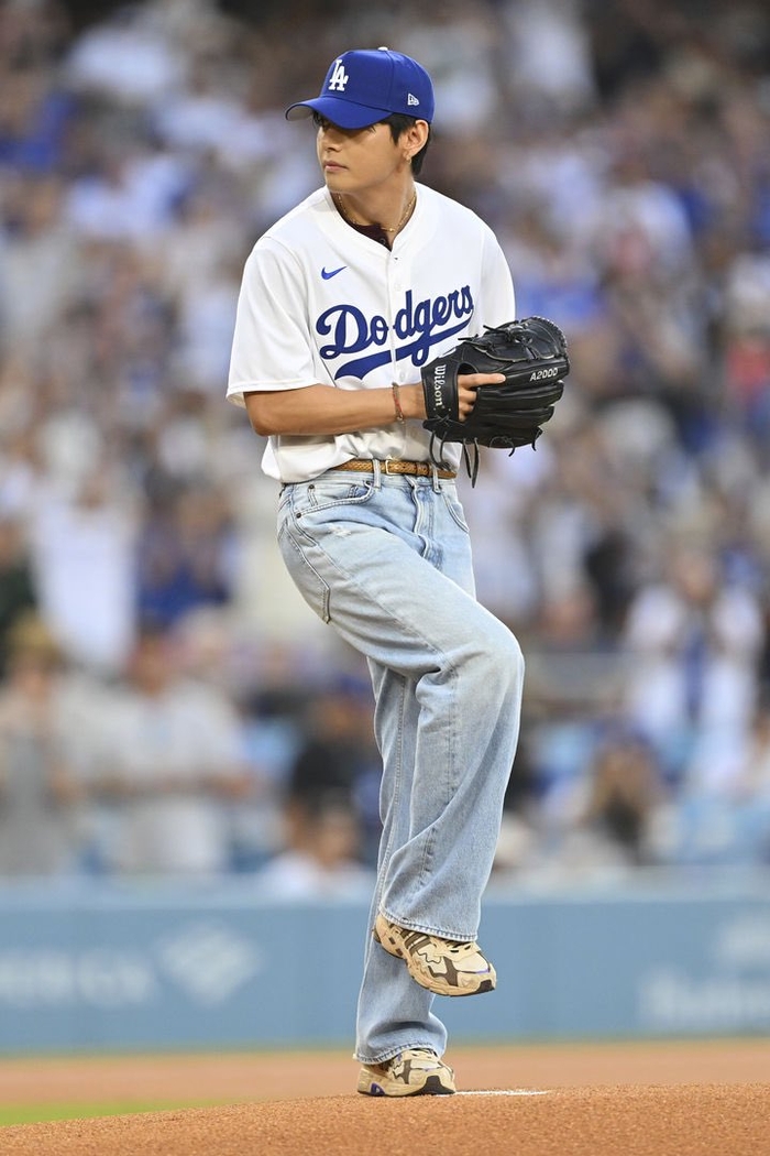[스포츠서울 | 배우근 기자] 방탄소년단 뷔가 로스앤젤레스 다저스타디움 마운드에 올라 전 세계의 이목을 집중시켰다.