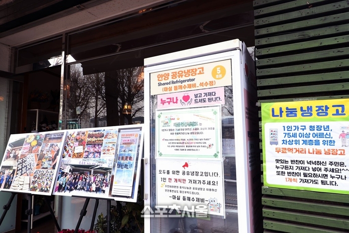 〔스포츠서울│안양=좌승훈기자〕경기 안양시 만안구 석수2동 마실들깨수제비 앞에 있는 공유냉장고(5호점)가 ‘두유’로 가득 채워졌다는 따뜻한 소식이 이달 초 전해졌다. 인근에 거주하는 한 시민이 민생회복 소비쿠폰으로 두유 5박스(120개)를 구입해 이웃을 위해 공유냉장고에 기부한 것이다.