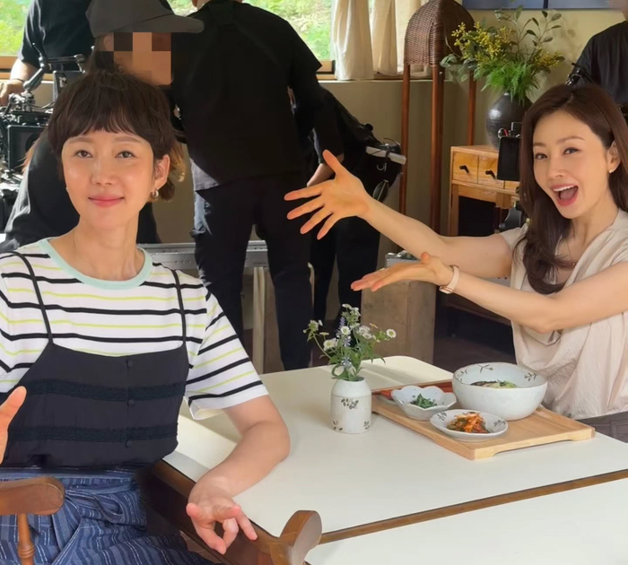 사진 속 오나라는 테이블에 앉아 염정아를 향해 손하트를 그리는 등 친근한 포즈를 취하며 밝은 미소를 짓고 있다.