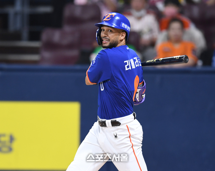 한화 리베라토가 27일 서울 고척스카이돔에서 열린 2025 KBO리그 키움과 경기 3회초 1사1,3루 파울타구를 바라보고 있다.