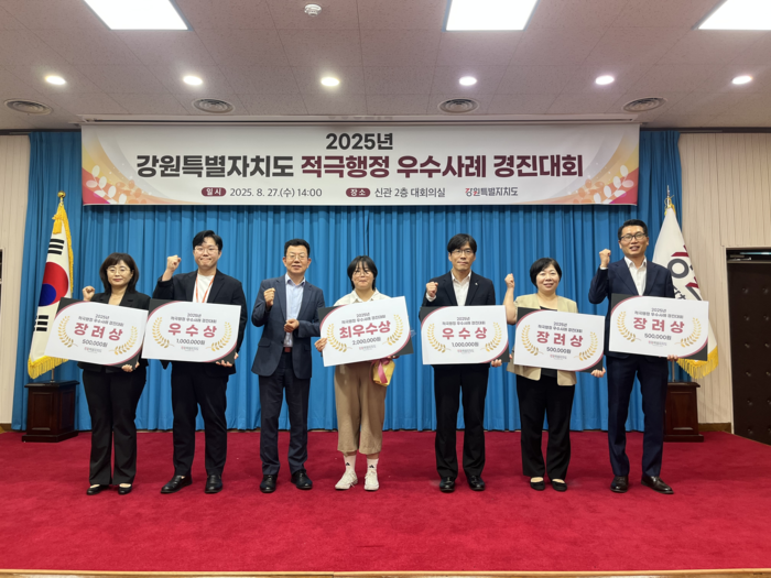 [스포츠서울ㅣ춘천=김기원기자]강원특별자치도(도지사 김진태)는 8월 27일(수) 도청 신관 대회의실에서 도, 시군, 지방공공기관 관계자가 참석한 가운데 「2025년 적극행정 우수사례 경진대회」를 개최했다.