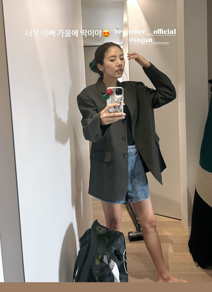 사진 속 손담비는 깔끔하게 어깨를 잡아준 오버핏 블레이저와 데님 쇼츠, 슬리브리스 탑으로 트렌디한 가을 데일리룩을 연출했다. 내추럴한 올림머리와 군더더기 없는 스타일링으로 세련된 분위기를 강조했다.