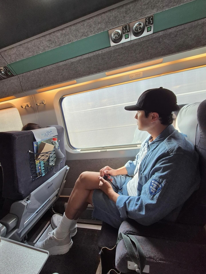 공개된 사진에는 부산행 KTX에 탑승한 소지섭의 모습이 담겼다. 그는 데님 셔츠와 반바지, 흰색 스니커즈, 그리고 블랙 캡으로 캐주얼하면서도 세련된 스타일을 선보였다.
