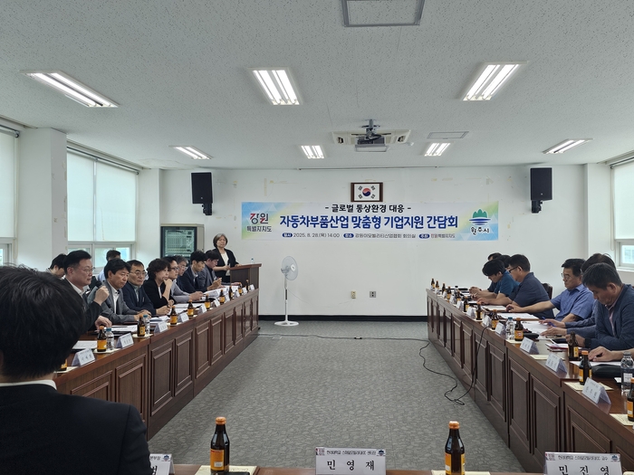 [스포츠서울ㅣ춘천=김기원기자]강원특별자치도(도지사 김진태)는 8월 28일(목), 원주 강원이모빌리티산업협회 회의실에서 도내 자동차부품 기업을 대상으로 글로벌 통상환경 대응을 위한 ‘자동차부품산업 맞춤형 기업지원 간담회’를 개최하였다.