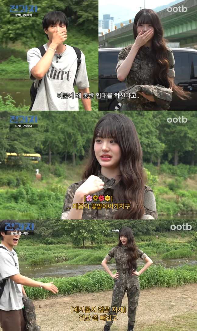 군복을 입을 입은 장원영의 모습은 같은 날 유튜브 채널 ‘ootb STUDIO’의 ‘전과자’ 코너를 통해 공개된 ‘아이브 장원영 군입대 현장 공개(서경대 군사학과)’라는 제목의 영상 촬영 중 남겨진 것으로 해당 영상에는 장원영은 가수 카이와 함께 동반 입대하는 모습이 그려졌다.