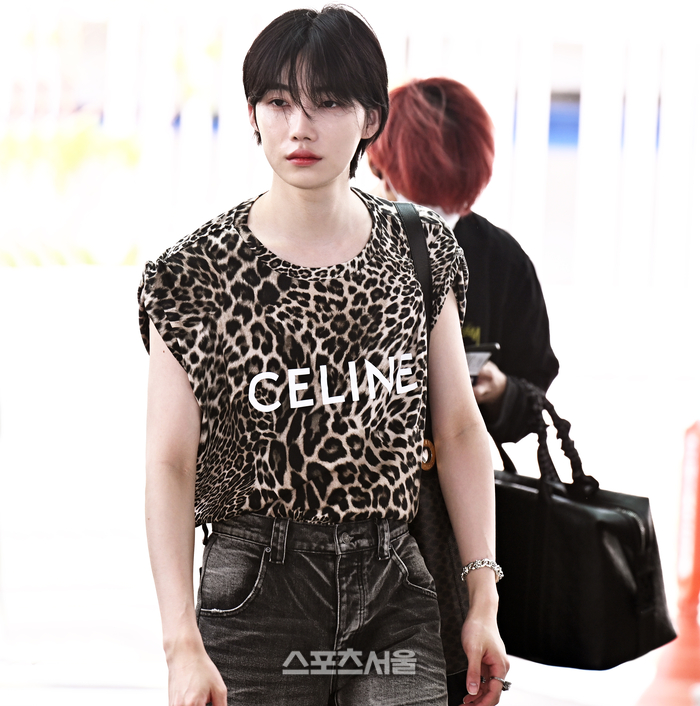 이날 뉴는 모던하면서 세련된 감각의 패션 스타일을 보여줘 팬들의 시선을 끌었다. 레오파드 패턴의 셀린느 티셔츠가 가장 눈에 띄는 포인트로, 와일드한 동물 프린트와 럭셔리 브랜드의 조합이 트렌디한 매력을 연출했다. 짧은 소매의 루즈한 핏으로 편안함과 스타일리시함을 동시에 갖추기도 했다.