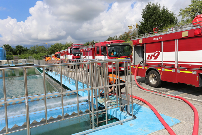 한편, 1일부터는 차량대수는 변동없지만, 기존 소방펌프차를 담수량이 큰 물탱크차량으로 교체해 1일 3천톤이 급수된다.