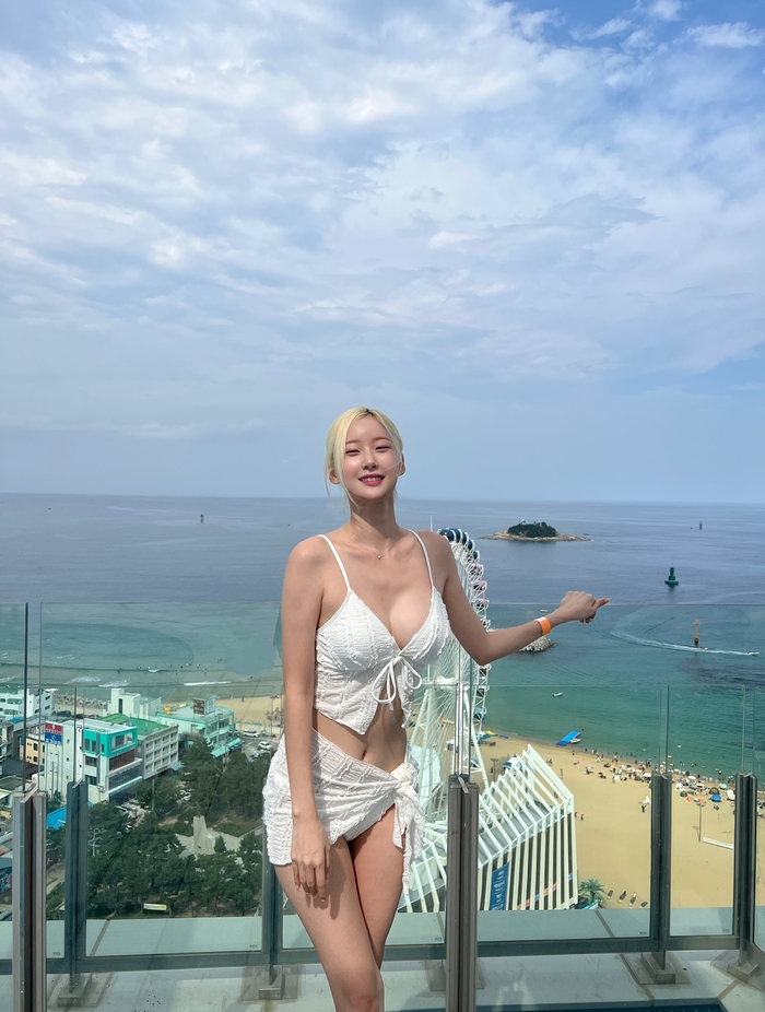 사진 속 서현숙은 시원한 바다를 배경으로, 화이트 컬러의 브라탑과 리본 디테일 랩스커트로 구성된 투피스 리조트룩을 입고 건강미를 뽐냈다. 해변의 파란색, 하늘과 어우러져 청량감을 더했다.