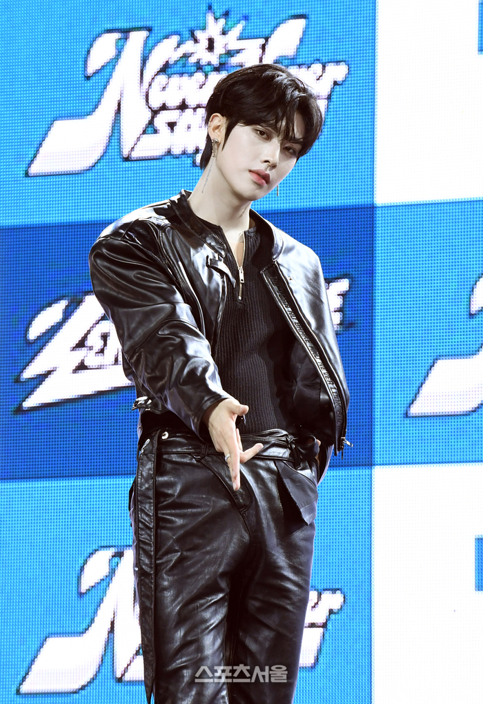제로베이스원(ZEROBASEONE)의 리키가 1일 서울 용산구 블루스퀘어에서 진행된 정규 1집 ‘네버 세이 네버(NEVER SAY NEVER)’ 발매 기념 미디어 쇼케이스에서 취재진을 향해 포즈를 취하고 있다. 2025. 9. 1.
