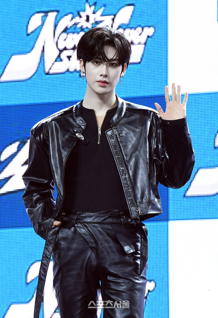 제로베이스원(ZEROBASEONE)의 리키가 1일 서울 용산구 블루스퀘어에서 진행된 정규 1집 ‘네버 세이 네버(NEVER SAY NEVER)’ 발매 기념 미디어 쇼케이스에서 취재진을 향해 포즈를 취하고 있다. 2025. 9. 1.