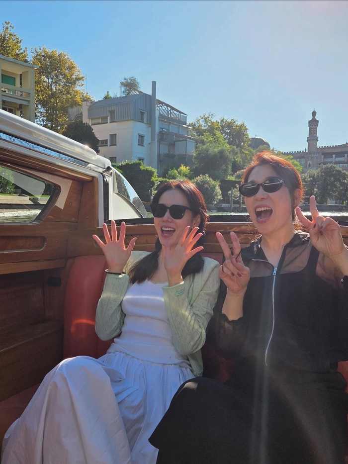 손예진은 1일 자신의 SNS에“우리의추억”이라는 멘트와 함께 운하의 요트 위에서 염혜란과 함께한 행복한 순간들을 담은 사진 여러 장을 공개했다.