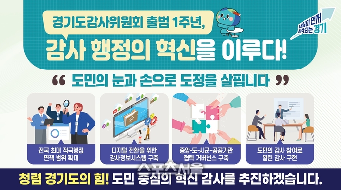 〔스포츠서울│수원=좌승훈기자〕경기도는 감사위원회가 출범 후 1년간 디지털 전환, 시군 및 공공기관과 협력체계 강화, 현장·열린 감사로 도민 참여도 확대 등 도정의 투명성과 책임성 향상에 기여했다고 2일 밝혔다.