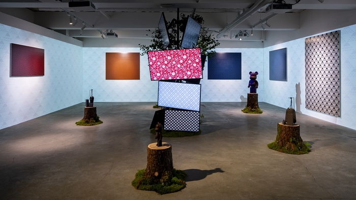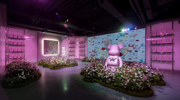 키메코미(Kimekomi) 기법을 현대적으로 재해석한 아티스트 켄 야시키는 2016년 발표한 작품 ‘PAUSE-Usa Usa’를 기반으로 한 감각적인 비주얼의 베어브릭을 선보인다. 이 원작은 그의 딸들이 한때 입었던 옷을 활용해 제작된 것으로 기억과 시간, 정체성이 맞닿는 전환점이 된 작품이다. 이번 베어브릭은 그 예술적 맥락을 재해석한 작업으로 전시장 3층 코스모스 꽃밭 속에 설치되어 삶의 흔적과 존재의 의미를 강렬하게 환기시킨다.