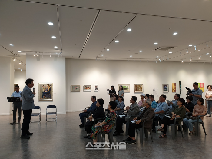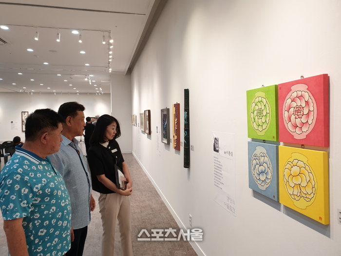 [스포츠서울ㅣ원주=김기원기자]사)강원민예총 원주지부(지부장 김옥주)가 주최하는 제22회 ‘칠지토(漆紙土) 생명의 어울림전’ 개막식이 열리는 9월 2일 치악예술관 전시실에서 문화예술과 예술팀 김민성 주무관과 전시회를 둘러 봤다.