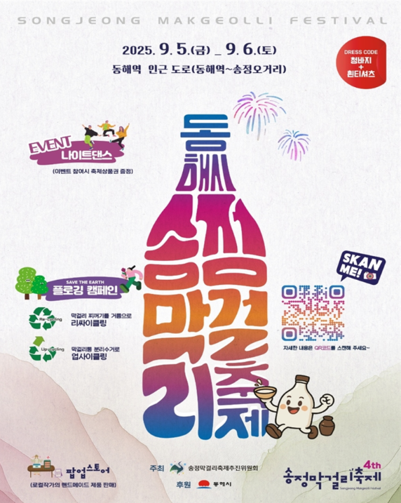 [스포츠서울ㅣ김기원기자]동해시 송정동의 대표 지역 축제인「제4회 송정막걸리 축제」가 오는 9월 5일(금)부터 6일(토)까지 2일간 동해역 광장 일원에서 열린다. 이번 축제는 송정막걸리축제추진위원회(위원장 김창열)가 주관한다.