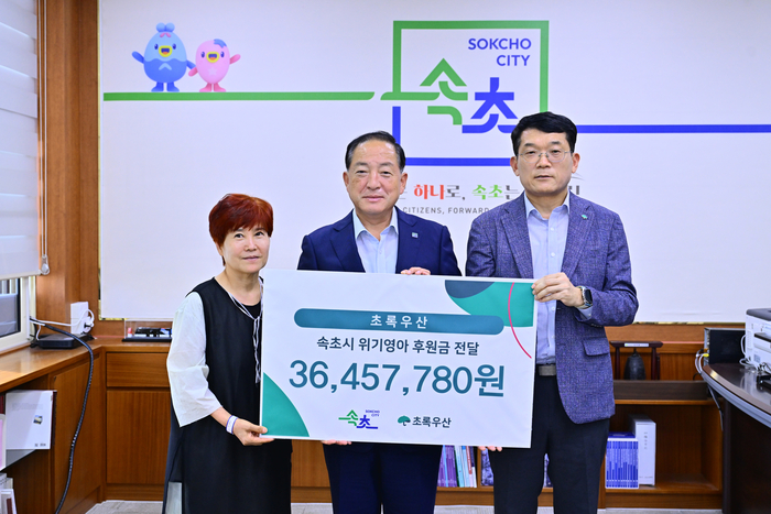 [스포츠서울ㅣ김기원기자]속초시는 9월 3일 시청에서 초록우산어린이재단 강원지역본부와 함께 희귀질환 아동 의료비 후원금 전달식을 개최했다. 이번 전달식은 재단이 진행한 모금 캠페인을 통해 마련된 3,600만 원의 후원금을 기반으로 열렸다.