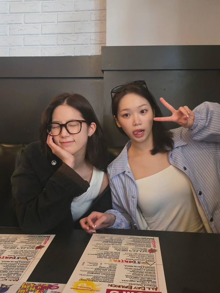 또 다른 사진에서는 김채원과 함께 식당에서 식사하며 다정한 분위기를 연출했다.