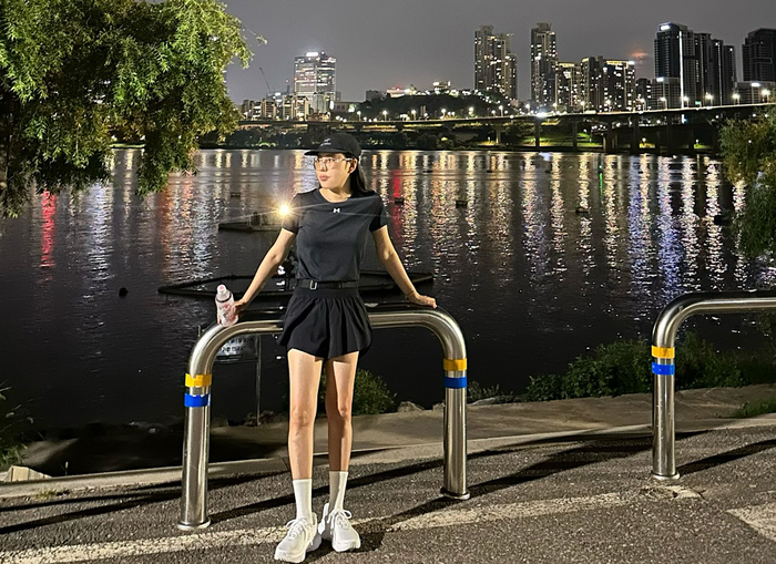 횡단보도 옆에서 이정표를 기대고 있는 모습부터, 역동적으로 달리는 순간, 그리고 운동 후 휴식을 취하며 땀을 식히는 모습까지, 꾸준히 운동을 이어가는 송가인의 성실함과 한층 건강해진 체형이 돋보인다. 특히 고요한 한강 야경과 도시의 불빛이 어우러져 송가인의 활기찬 에너지를 더욱 부각시켰다.