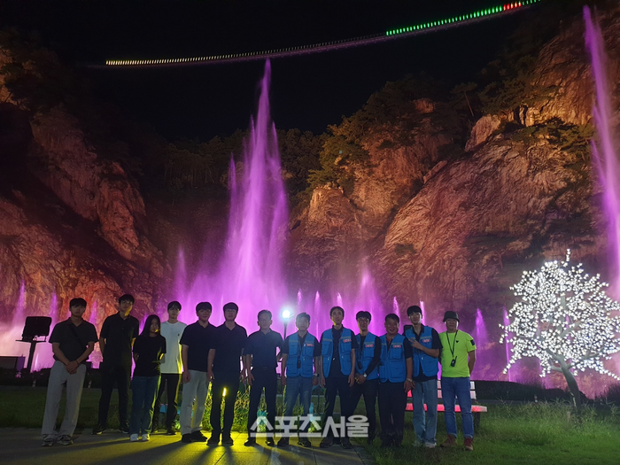 지난 7월 ‘소금산그랜드밸리’와 ‘반계리은행나무광장 조성’사업장 시설안전점검에 동행했던 홍순필 관광과장, 전찬봉 관광시설관리팀장, 조혜리 주무관, 박준오 주무관, 김성진 주무관과 공연을 관람했다.