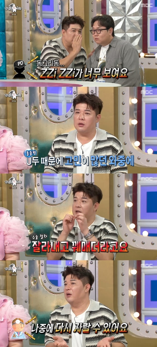 신동은 “이것 때문에 고민 많이 하고 있다가 군대 갔다 왔는데 어느 날 인터넷 보니까 유두 축소 수술이란 게 있어서 수술했다. 좀 잘라내고 꿰맨 수술인데 의사가 수술 후에 ‘몸은 원래대로 돌아오려는 성질이 있어서 나중에 다시 자랄 수 있다’고 하더라”고 밝혔다.