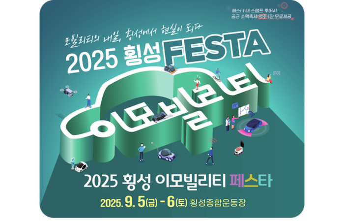 [스포츠서울ㅣ춘천=김기원기자]강원특별자치도(도지사 김진태)와 횡성군은 9월 5일부터 6일까지 이틀간 횡성종합운동장 일원에서「2025 횡성 이모빌리티 축제(페스타)」를 개최한다고 밝혔다.