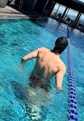 4일 앤톤은 공식 SNS를 통해 수영장 사진을 공개했다. 사진 속 그는 물살을 가르며 자유형 영법을 펼치거나 수영장 가장자리에 앉아 휴식을 취하고 있다.