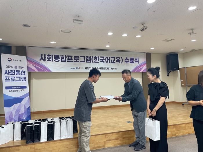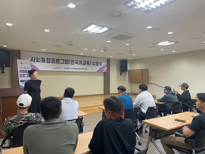 [스포츠서울ㅣ김기원기자]속초해양산업단지 외국인 근로자 한국어 교육프로그램 수료식이 지난 4일 산업단지 지원센터 열렸다.