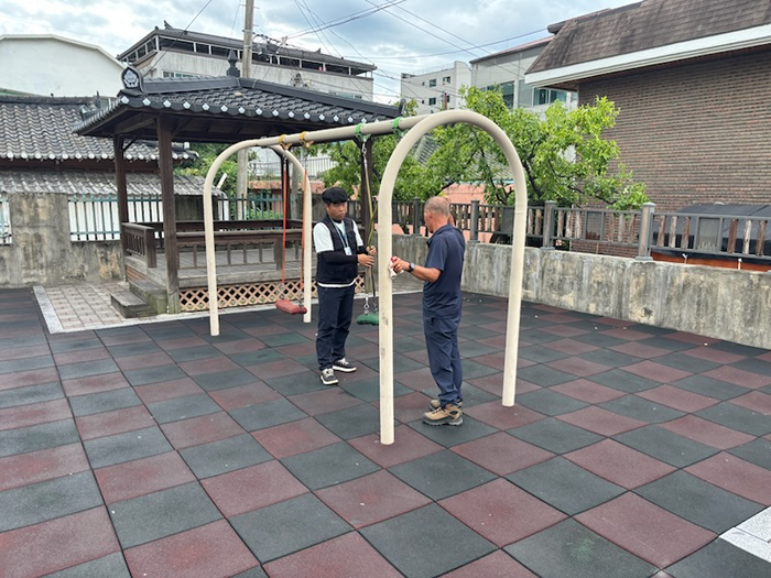 점검은 어린이놀이시설 안전 검사 기관에 의뢰해 민간 전문가와 합동으로 실시하며, 주요 점검 내용은 △안전 검사·보험 가입·안전교육 이수 여부 △안전 점검 및 안전 점검 대장 기록 현황 △시설물 파손 및 바닥재 손상 여부 등이다.