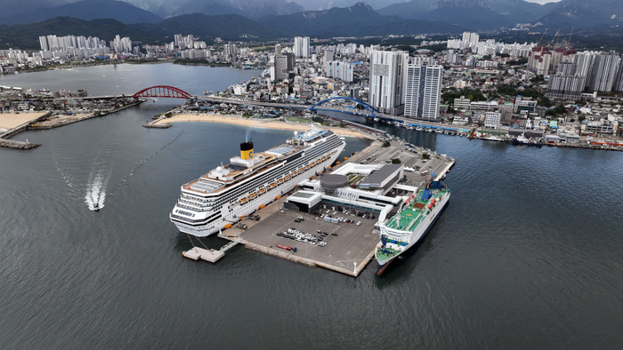 [스포츠서울ㅣ김기원기자]속초시와 강원특별자치도, 도의회, 강원관광재단이 참여한 크루즈 시찰단과 강원도민·속초시민 크루즈 체험단이 출발한 6일 시찰단과 체험단이 승선한 코스타세레나호와 속초항 카페리 항로의 카페리선이 국제크루즈터미널에 나란히 정박해 있다.