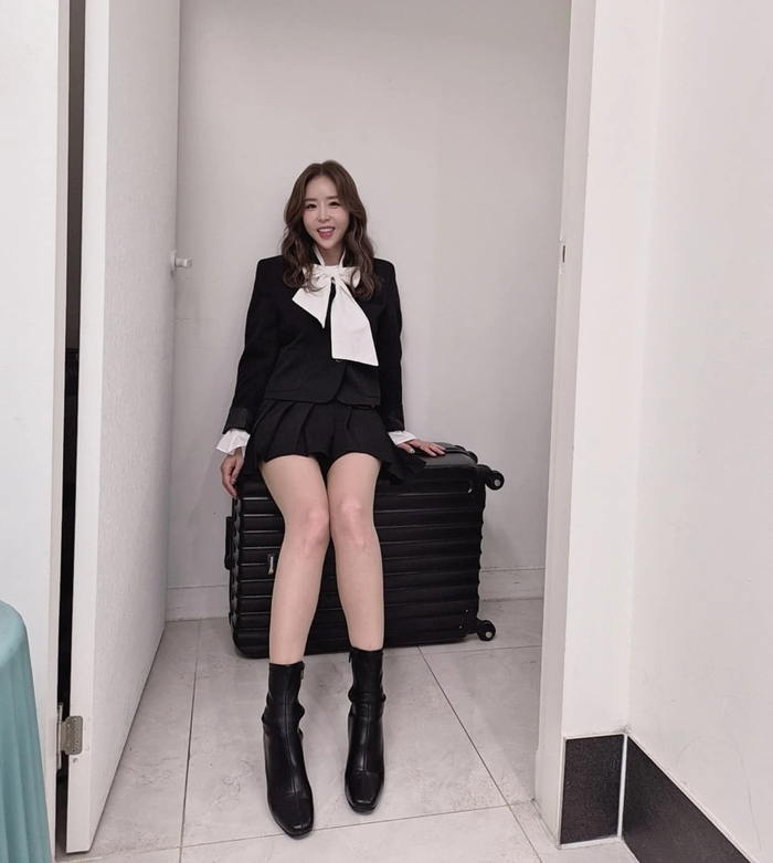 공개된 사진 속 신지는 검은색 재킷과 흰색 리본 블라우스로 깔끔하면서도 세련된 스타일을 선보였다. 특히 밝게 웃는 모습과 함께 한결같이 아름다운 미모를 자랑했다.
