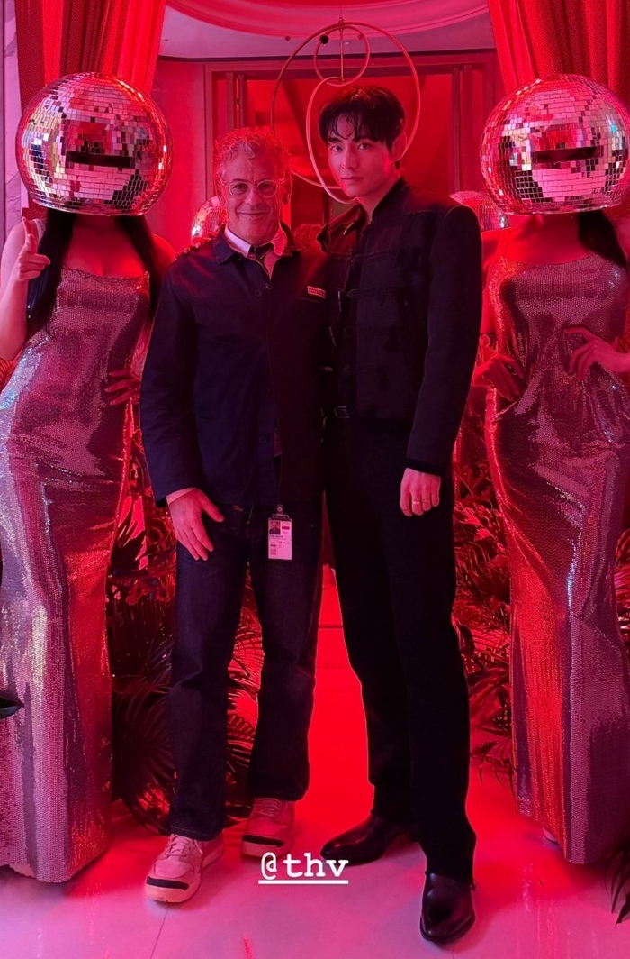 뷔는 호스트 페기 구의 소개로 무대에 올라 전 세계 셀럽, 아티스트들과 인사했고, 일본 스트릿 패션계의 베르디(VERDY), 현대 미술가 톰 삭스(Tom Sachs), 미국 유명 프로듀서 토미 브라운(Tommy Brown) 등과 교류하며 화려한 밤을 즐겼다.
