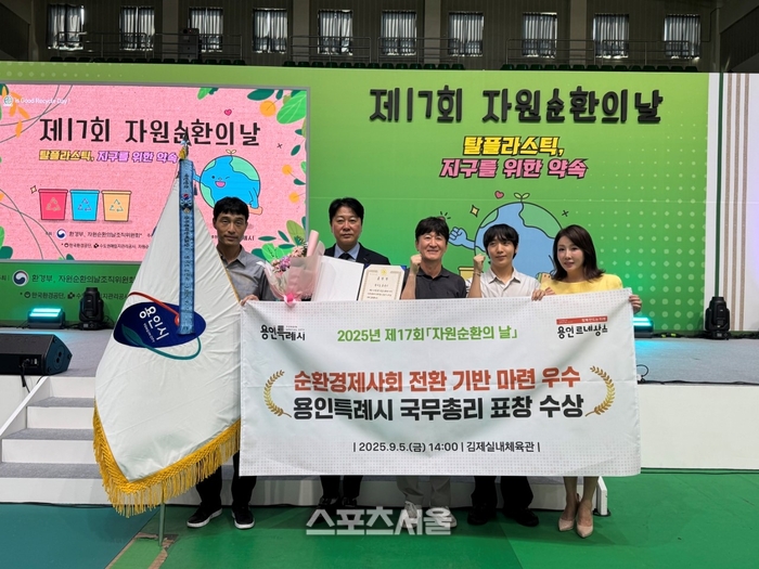 〔스포츠서울│용인=좌승훈기자〕경기 용인시는 자원순환 분야 공로를 인정받아 ‘국무총리 단체 표창’을 받았다고 8일 밝혔다.