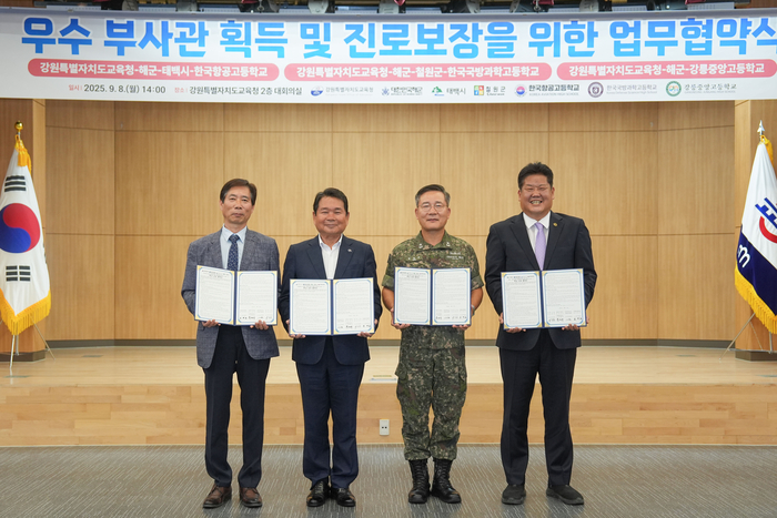 이번 협약은 강원 직업계고 학생들이 졸업 후 해군 부사관으로 안정적인 진로를 설계할 수 있도록 해군 부사관 맞춤형 교육과정을 지원하고, 교육청·지자체·군이 협력하는 인재 양성 기반을 마련하기 위해 추진됐다.