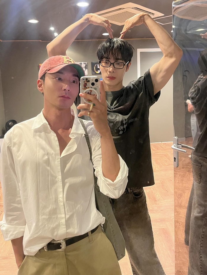 공개된 사진 속 추영우는 카메라를 향해 브이(V) 포즈와 하트 포즈를 취하며 로이킴과의 만남을 기념하고 있다. 두 사람은 편안한 분위기 속에서 환한 미소와 다정한 포즈로 친목을 드러냈다.
