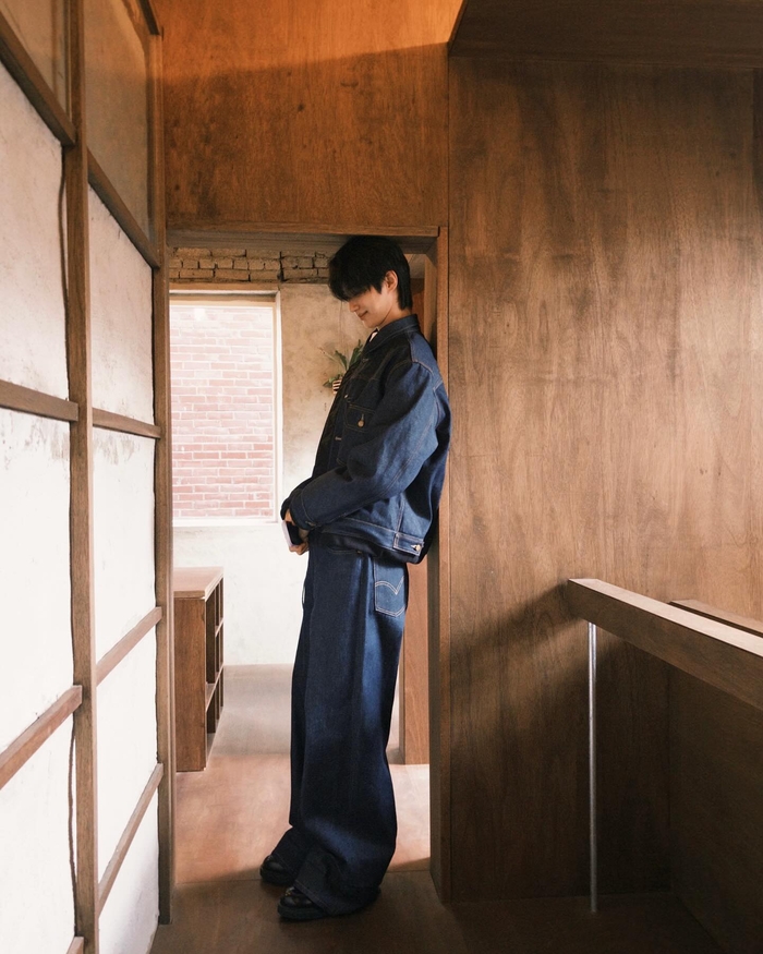 공개된 사진에서 변우석은 실내에서 인디고 데님 재킷과 와이드 데님 팬츠를 세련된 스타일로 소화하며 눈길을 끈다.