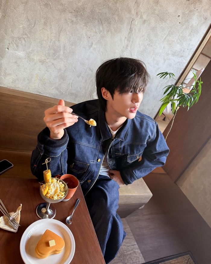 특히, 190cm의 큰 키를 가진 그는 출입문에서 머리가 닿는 모습, 벽장 옆에 자연스럽게 기댄 모습 등을 연출하며 남다른 비율과 유머 감각을 동시에 자랑했다. 편안하게 앉아 디저트를 즐기는 사진에서는 캐주얼하면서도 엣지있는 스타일링이 돋보인다.