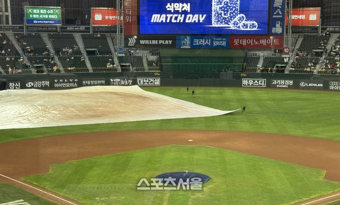 시간은 흘러 오후 6시3 0분, 공식 경기 개시 시각이 지났지만 플레이볼은 선언되지 않았다. 잔잔한 빗줄기는 멈출 듯 멈추지 않았고, 경기 진행 요원들은 수시로 마운드와 내야 잔디 상태를 점검했다. 결정을 기다리던 순간, 롯데 구단은 “오후 6시40분 방수포를 걷어내고 경기장 정비에 들어간다”고 알렸다. 이어 “운동장 정비가 끝나는 대로 7시에 경기를 시작한다”고 발표했다. duswns0628@sportsseoul.com