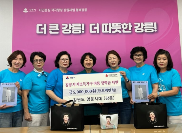 강원영웅시대 강릉방은 지난 8일 강릉시청에 저소득층 아동을 위한 장학금 500만 원을 기부했다. 이번 기부금은 강릉 지역의 저소득층 아동들에게 전달된다. 아이들이 꿈과 희망을 잃지 않도록 돕는 데 사용될 예정이다.