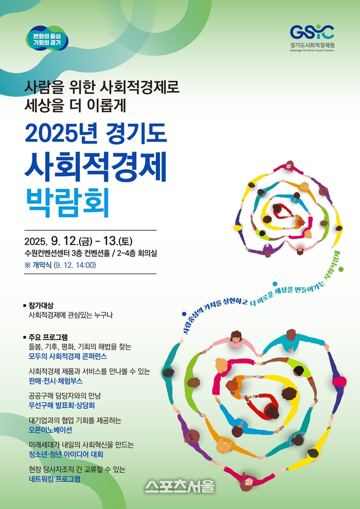 〔스포츠서울│수원=좌승훈기자〕경기도는 오는 12~13일 양일간 수원컨벤션센터에서 ‘2025년 경기도사회적경제박람회’를 연다고 10일 밝혔다.