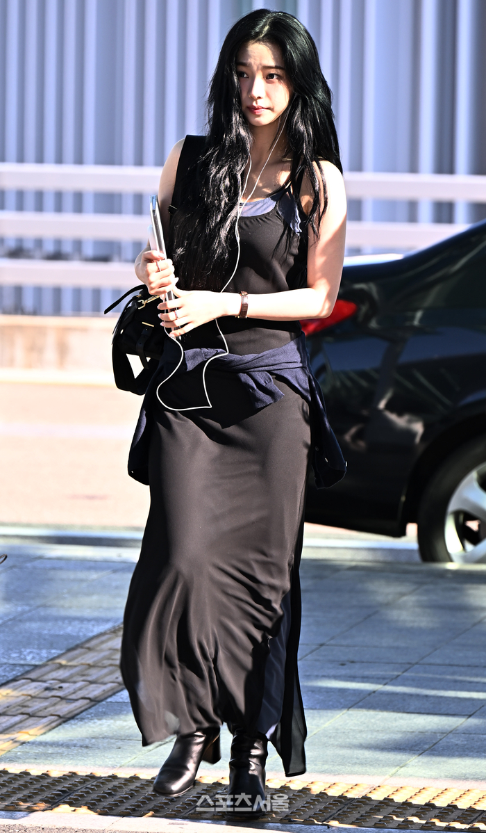 이날 카리나는 모던하고 미니멀한 올블랙 스타일로 고급스러움을 뽐냈다. 심플하면서도 세련된 룩으로 캐주얼과 시크함이 조화롭게 어우러진 스트리트 패션이었다.