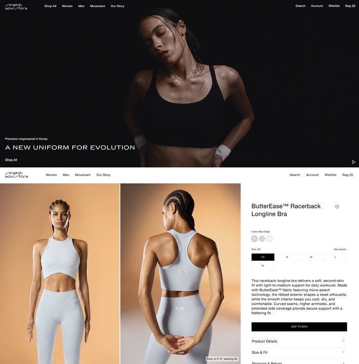 안다르는 ‘스트레치유어스토리’ 론칭에 앞서, 지난 7월 미국 현지에 커머스 인프라 구축을 완료하고, 온라인 스토어를 시범 운영해 소비자 반응 데이터를 확보했다. 선공개한 여성 제품 50종을 통해 미국 소비자의 사이즈 적합도와 선호 디자인, 재구매율 및 반품율 등에 대한 소비자 반응을 면밀히 살펴 현지에서의 경쟁력을 확인했다. 이때, 원단의 품질과 기능적이고 심플한 디자인 등 다양한 영역에서 기대 이상이라는 반응이 두드러졌다.